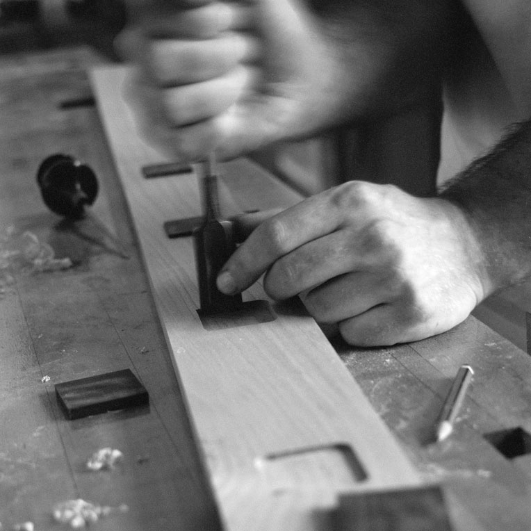 Mortice and tenon joints, dovetails, hand-laying of veneers, hand-fitted inlays in contrasting timbers aren’t just for show – despite being intricately beautiful. They add strength and durability, allow for seasonal movement or conversely ensure parts won’t budge when they shouldn’t.