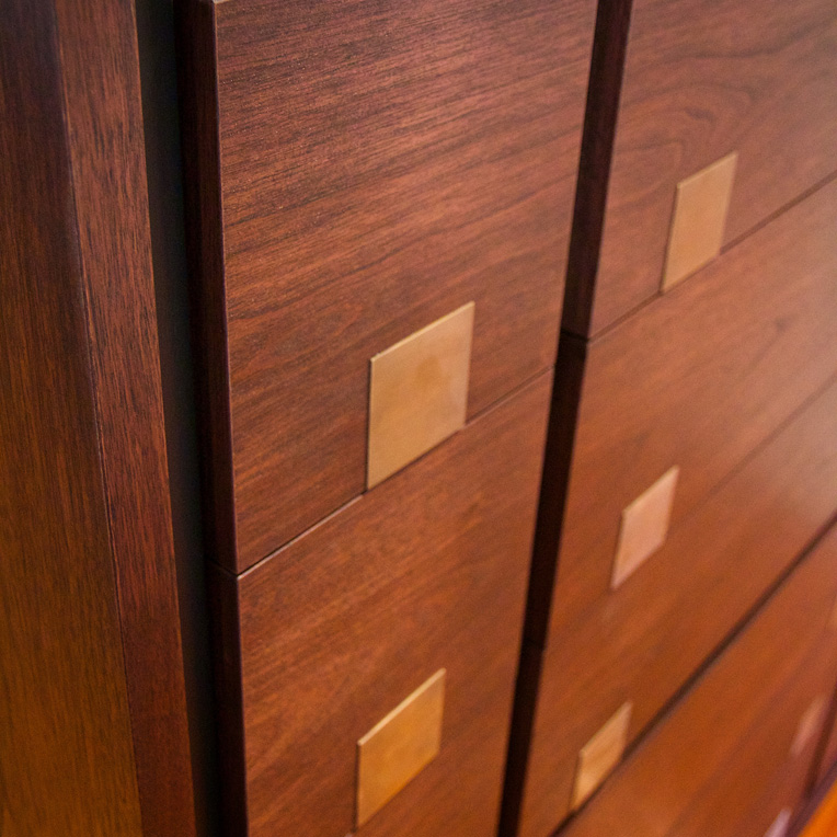 Dark American Walnut, Ebonised Walnut, Brass flap handles.