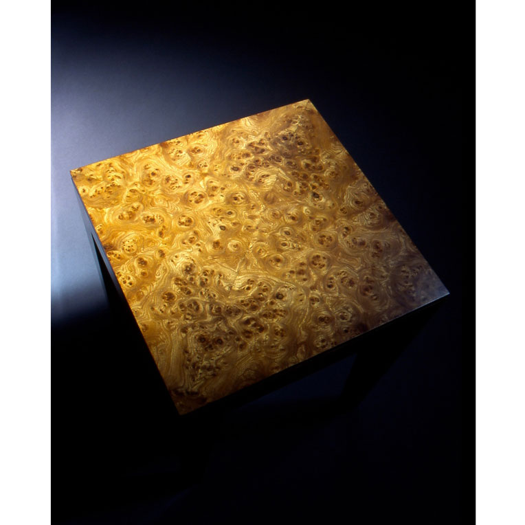 Burl Elm is a stunning wood, which works well in this sidetable with a quarter bookmatched top.