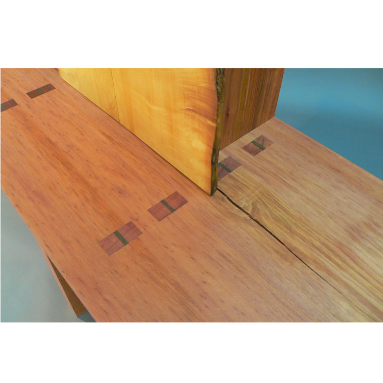 Solid Tasmanian Myrtle and Huon Pine, with Fiddleback Blackwood bow-tie dovetails.