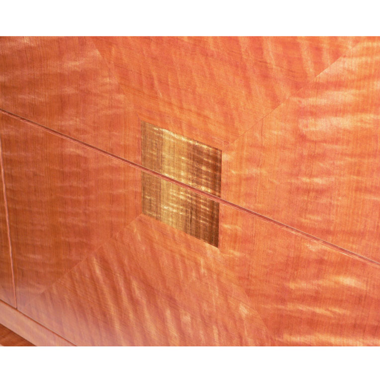 This cabinet can either be used as a Sideboard or Entertainment unit. Both the drawers and doors are push to open. Quarter matched veneer is the feature across the front.