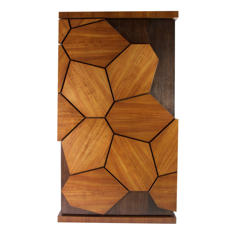 “The seven drawers are made from Hydrowood Celery Top Pine, featuring hand-cut dovetail joints. LED lighting illuminates various details when the drawers are opened and internal voice recordings further describe the piece and the unique timber it’s made from.”
