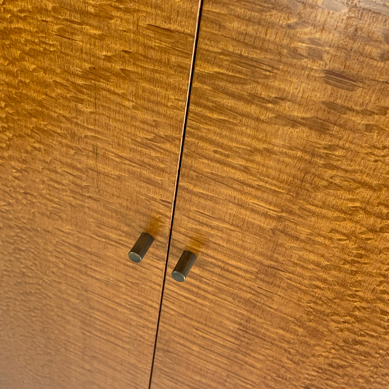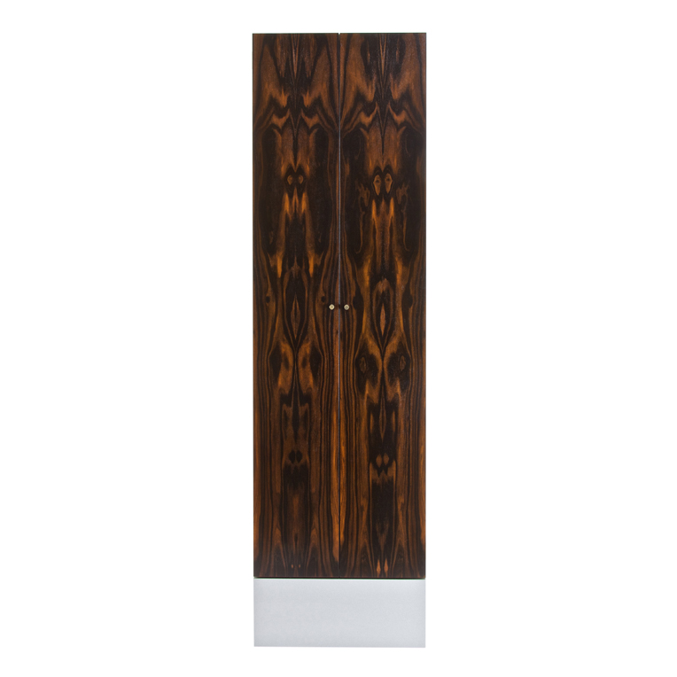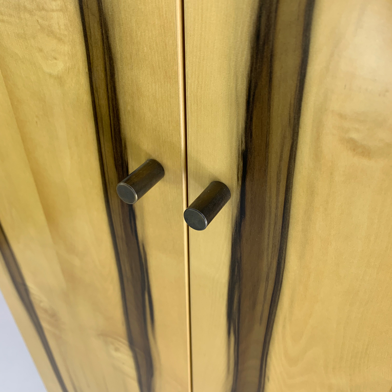 Sassafras, with Victorian Ash interior. Silky Oak, with Victorian Ash interior. Macassar Ebony, with Victorian Ash interior. Metallic paint finish to base, aged brass knobs.