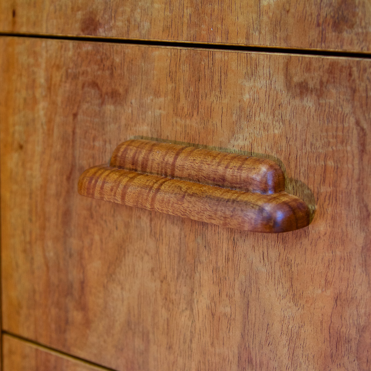 Made from stunning Fiddleback Blackwood, this Art Deco inspired breakfront cabinet is fitted out as a bar unit, with a fold down flap which reveals storage bottles and glasses.