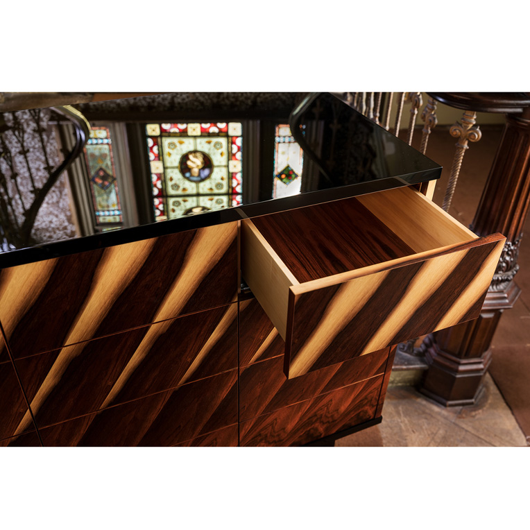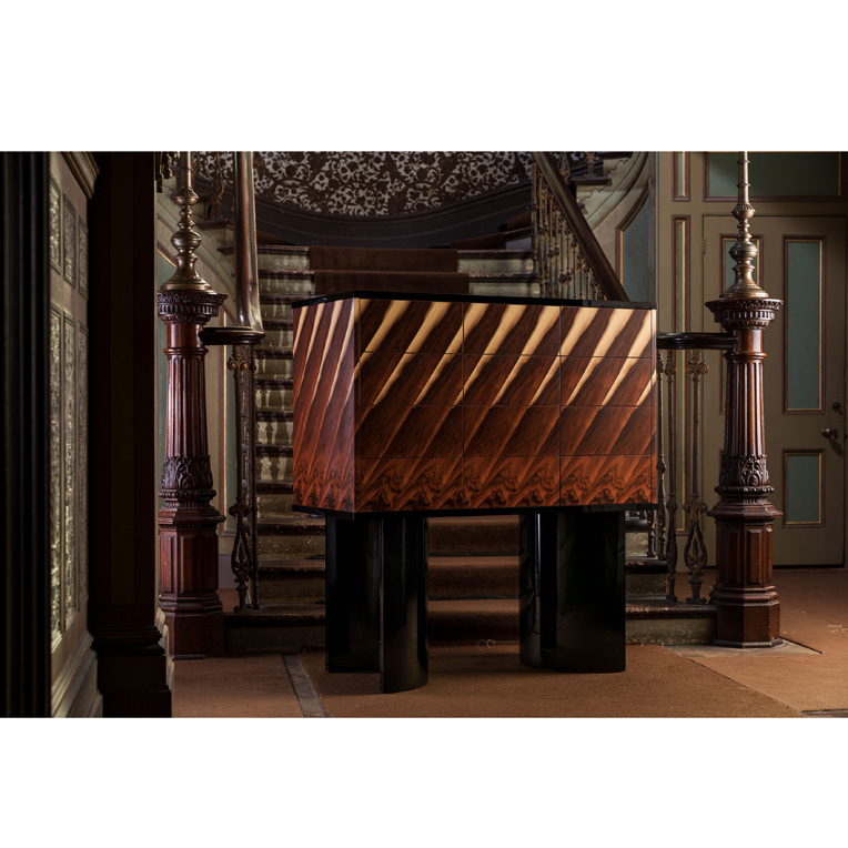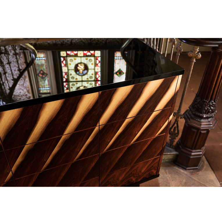 “This is one of my contemporary Art Deco pieces. It’s made out of rare Brazilian Rosewood, which is now an endangered species.