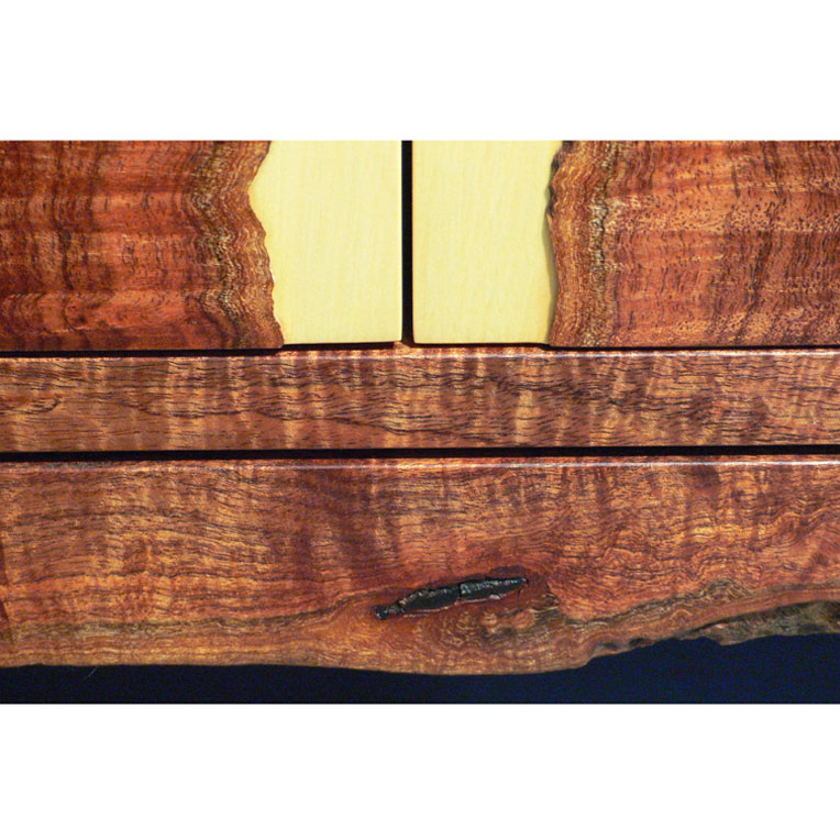 This is a stunning one-off collectors piece, which was entered into Studio Furniture 2010, where it was highly commended. The cabinet is constructed with hand cut dovetail joints and features two center drawers. The Huon Pine reveal provides a highlight against the colour of the blackwood.