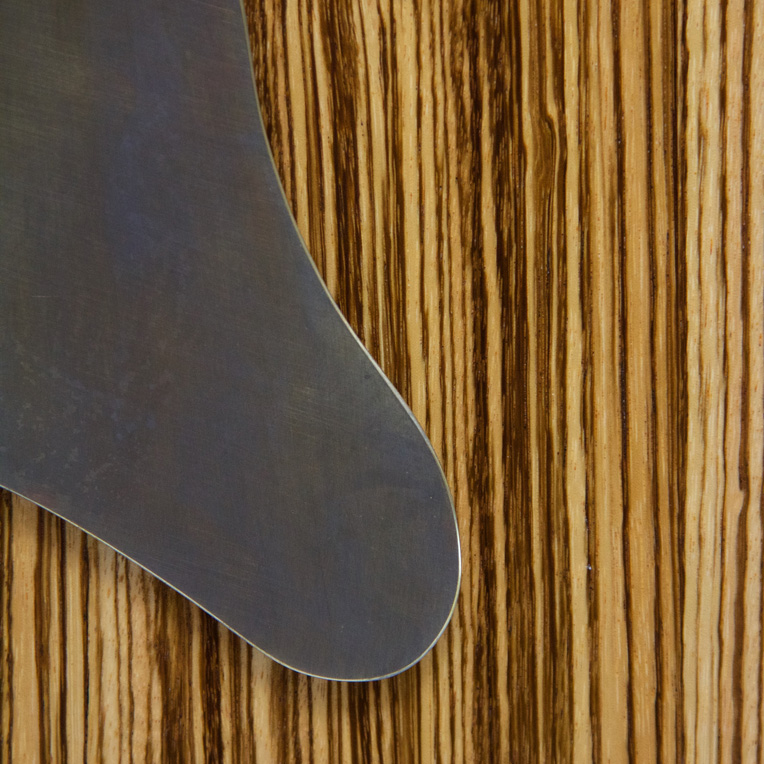 Dark Walnut, with Zebrano doors, Celery Top Pine drawers and aged bronze handles.